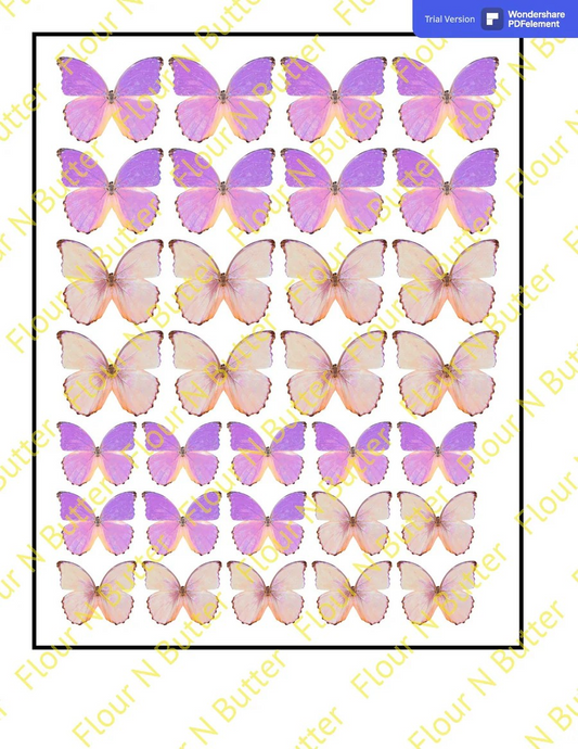 Flour N Butter - Pink & Purple Double Layered Edible Wafer Butterflies (34 pack)